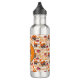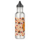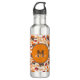 Whimsical Fall theme stainless steel water bottle features wheelbarrows of pumpkins, small floral bouquets and pale orange and white stripes.  Customise with name and initial