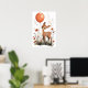 Whimsical Fawn Holding Orange Balloon in Wildflowe Poster