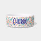 This is a heavy, durable bowl decorated with Tibbies of many colors, the perfect size for hungry/thirsty Tibs. The design is interesting and printing clear.