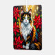 Cute Christmas cat themed ornament with a beautiful fluffy calico cat and red poinsettias with a gold background. On the back you can add your own custom message.