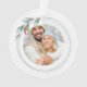 A perfect gift for newlyweds or anniversary weddings, this elegant acrylic Christmas ornament features front photo encircled by a string of holiday lights. Our first Christmas as Mr. & Mrs. with the date curves over the top of your photo. The words Merrily Ever After is set in white hand lettered typography over a solid baby blue background on the back. Customise this round ornament with your names to create a unique keepsake for a Christmas wedding gift. To see more designs visit www.zazzle.com/vginvites