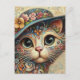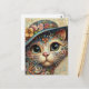 Whimsical Floral Abstract Kitty Cat with Hat Postcard