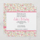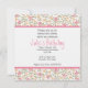 Top and bottom illustrated with a gorgeous floral pattern, flowers in pink and peach with green leaves. On the centre you can replace the existing texts with your party information. The background features the same floral pattern.