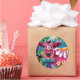 Whimsical Floral Cow Pink Teal Black Personalised Classic Round Sticker