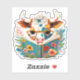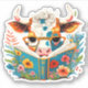 Whimsical Floral Cow Reading Book Vinyl Sticker. Cute vinyl sunshine sticker to embellish laptops, water bottles etc. This sticker can be easily transferred to other available stickers that are different sizes and shapes by utilising Zazzle's Personalise/Design Tools features.