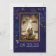 A few navy, indigo and honeycomb coloured whimsical flowers, grasses and leaves, hand drawn in watercolor, over an indigo, purple and navy background, decorate this elegant, modern and simple photo wedding save the date card template. Personalise it with your text and picture. A lovely choice for a modern couple, a garden wedding and a magical, intimate celebration.