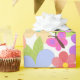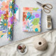 Wrap your gifts in a special and colourful way with this cute and whimsical wrapping paper. Orange, pink, purple, and yellow flowers are featured in the pattern, along with vibrant leaves and butterflies.