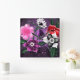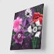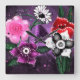 Whimsical Floral Purple Black Pink Daisy Daffodil Square Wall Clock