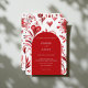 Unique modern wedding invitation featuring bold red whimsical florals with elegant heart accents. Perfect for December celebrations and holiday weddings with a distinctive floral touch.