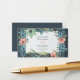A beautiful wedding enclosure card that has the design of a floral frame with leaves against a dark background, in the style of dark aquamarine, textured illustrations, watercolor and vibrant colours of cool blue, salmon and greens.