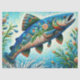 Whimsical Floral Salmon Fish Blue Decoupage Tissue Paper