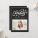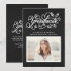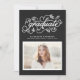 Rustic and whimsical graduation photo invitation featuring modern calligraphy, leaves accents, and faux chalkboard background. This design is available in variety of colors.