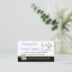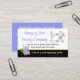 Custom sewing business card done in white, with a black stripe, across the bottom. A whimsical floral sewing machine decorates the top right corner and pretty flowers are on the bottom left. Personalise all the text fields for your business needs. Chose card stock you prefer with this design.