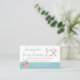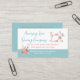 Custom sewing business card done in white, with a turquoise blue stripe, across the bottom. A whimsical floral sewing machine decorates the top right corner and pretty flowers are on the bottom left. Personalise all the text fields for your business needs. Chose card stock you prefer with this design.