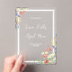 Whimsical Floral watercolor Wedding Invitations. Elegant clear acrylic invitation makes a bold statement when guests open wedding invitations. Create a luxury experience using a custom template to create DIY invites on a budget.
