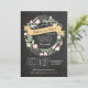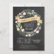 This Sweet Sixteen birthday party invitation features rustic hand drawn flowers arranged in a wreath on a chalkboard background. A ribbon banner adds a vintage feel.