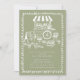 Celebrate love in full bloom with our charming sage green and white Floral Market Bridal Shower Invitation. This delightful design features a whimsical flower cart adorned with pots of vibrant blooms and a heartfelt sign that reads "Love is Blooming," personalised with the couple's names. The invitation is beautifully framed with a hand-drawn scribble doodle, adding a touch of artistic flair to your special event. Perfect for a rustic or garden-themed bridal shower, this invitation sets the tone for a memorable celebration filled with love and joy.