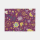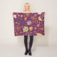 Whimsical Flowers and Birds fleece blanket, cute, artsy, bright, and cheery, features a purple background with yellow birds and flowers of white, teal, and yellow.