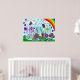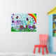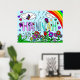 A large pretty colourful poster for a child's bedroom with the name Hannah. Colourful flowers, purple, pink, red, yellow, blue and green accents with a pretty rainbow, butterflies, caterpillars and ladybugs.
