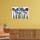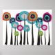 Whimsical Flowers Art Poster IV, bright, bold colourful flowers in fuschia, bright blue, lime green, orange and red with black stems.