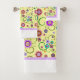 A Colourful And Whimsical Bath Towel Set Patterned In Swirls Of Flowers For The Bath