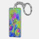 WHIMSICAL FLOWERS & BUTTERFLIES blue green yellow Key Ring