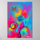 WHIMSICAL FLOWERS & BUTTERFLIES pink yellow blue Poster