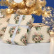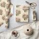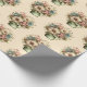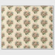 Wrapping paper with a cute image. Blue. pink and cream colored flowers with green leaves. Set inside a green flower pot with a green plaid cloth hanging over the side.