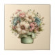 Whimsical Flowers in a Planter Pot Cute Tile