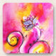 WHIMSICAL FLOWERS pink yellow fuchsia Coaster