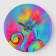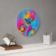 WHIMSICAL FLOWERS pink yellow teal blue Large Clock
