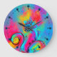WHIMSICAL FLOWERS pink yellow teal blue Large Clock