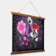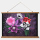 Whimsical Flowers Purple Floral Black White Pink Hanging Tapestry