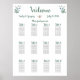 Wedding seating chart designed for 12 table reception decorated with whimsical floral motifs inspired by wildflower garden