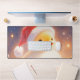 Whimsical Fluffy Duckling Santa Hat Holiday Snow Desk Mat