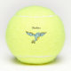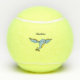 These tennis balls have a pretty whimsical bluebird with a yellow scroll tail, yellow belly and accents on wings and blue dots with its wings spread in flight. Customise your name on the front and back with the template.