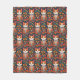 Whimsical Folk Art Cat and Flowers Fleece Blanket