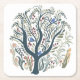 Whimsical Folk Art Forest Earth Tones Square Paper Coaster