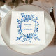 Whimsical French Blue Botanical Crest Wedding Napkin