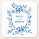 Whimsical French Blue Botanical Crest Wedding Square Paper Coaster