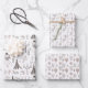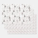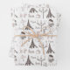 A set of three coordinated gift wrap sheets decorated with Eiffel towers, umbrellas, hot air balloons, and other Parisian icons.