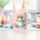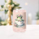 A charming green frog peeks out of a delicate porcelain teacup adorned with soft pink blossoms and gold trim, crowned with a wreath of pastel florals and a tiny royal crown. This endearing scene blends fairytale whimsy with cottagecore elegance, evoking gentle nostalgia and playful storybook vibes. Rendered in a dreamy watercolor style, this sweet composition captures the magic of tea parties and nature’s smallest royalty. Ideal for lovers of frogs, florals, and vintage flair. AI generated artwork.
