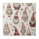 A charming pattern ceramic tile featuring two whimsical garden gnome illustrated in a soft, vintage watercolor style. This design blends fantasy, nature, and old-world charm. The muted earthy palette of greens, creams, and browns creates an enchanting, storybook-like feel perfect for holiday, cottagecore vibes, and magical-themed. Ideal for Christmas, winter gifting, fairy-tale lovers, fantasy enthusiasts, and handmade enthusiasts.