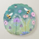 Whimsical Garden Meadow Bees Flowers Fireflies Round Cushion