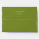Whimsical moss green garden wedding envelope featuring colourful wildflowers and handwritten script font. This wedding envelope is perfect for couples looking to add a touch of charm and elegance to their special day. The intricate floral design adds a touch of whimsy and highlights the joy of blooming love. The colourful wildflower pattern on the inside provides a playful element to the design.