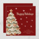 Capture the heartwarming essence of Christmas with this delightful holiday greeting card. A beautifully illustrated Christmas tree, adorned with an array of charming gingerbread cookies and festive ornaments, stands proudly against a deep red backdrop sprinkled with gentle snowflakes. This card is designed to spread joy and warmth during the holiday season. The playful gingerbread designs, including cute gingerbread men and ornately decorated cookies, add a unique and artistic touch to your seasonal correspondence. Send a memorable message that twinkles with holiday spirit.