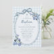 Whimsical Gingham Dusty Blue Floral Boy Baptism Invitation