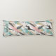 A playful and vibrant seamless pattern body pillow featuring stylised giraffes with charming polka-dot details, surrounded by floating feathers and abstract shapes. The backdrop features broad diagonal brushstrokes in soft pastel shades of pink, teal, and beige, highlighted with gold glitter accents and scattered black dots for added texture. A modern, artistic take on safari style—perfect for kids' themes, playful decor, or whimsical seasonal designs.