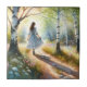 This enchanting artwork captures a dreamy woodland scene where a young girl in a flowing, vintage-style dress dances down a sun-dappled forest path. Surrounded by soft birch trees, delicate foxgloves, and glowing wildflowers, the mood is pure cottagecore—peaceful, nostalgic, and full of wonder. Gentle pastel tones of lavender, sage, and blush pink mingle with golden sunlight and deep forest greens to create a whimsical, storybook-like atmosphere. The watercolor style adds an ethereal softness, as if the whole scene were lifted from a fairytale memory. It's a timeless blend of nature, femininity, and quiet magic. AI generated artwork.