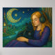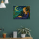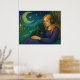 Whimsical Girl with Black Cat Under Crescent Moon Poster